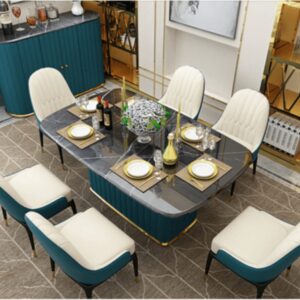 Redefine luxury dining with the Elysian Luxe Marble Dining Set, crafted with an advanced marble rock plate top that’s scratch-proof, stain-resistant, and heat-resistant. Designed with a stainless steel and leather base, this dining set combines durability with sophistication. Hidden storage adds everyday functionality, while upholstered chairs ensure maximum comfort. Choose between a modern lightweight marble rock plate or a classic marble slab for timeless elegance.