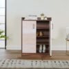 The Helios Shoe Cabinet is the perfect storage solution for compact spaces. Designed with two doors and multiple shelves, it neatly organizes your sneakers, sandals, heels, and flip-flops while keeping them dust-free. The warm walnut finish adds a touch of elegance, making it an ideal fit for modern homes. Perfect for small families or couples who love to keep their footwear collection tidy.
